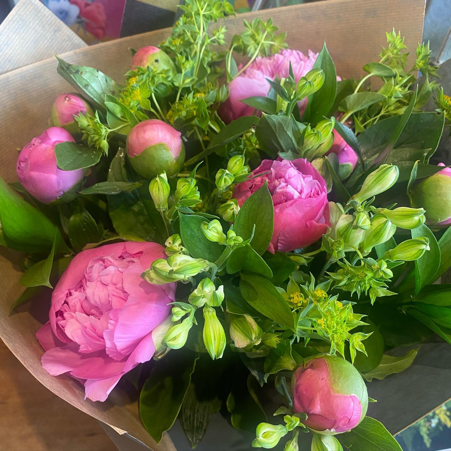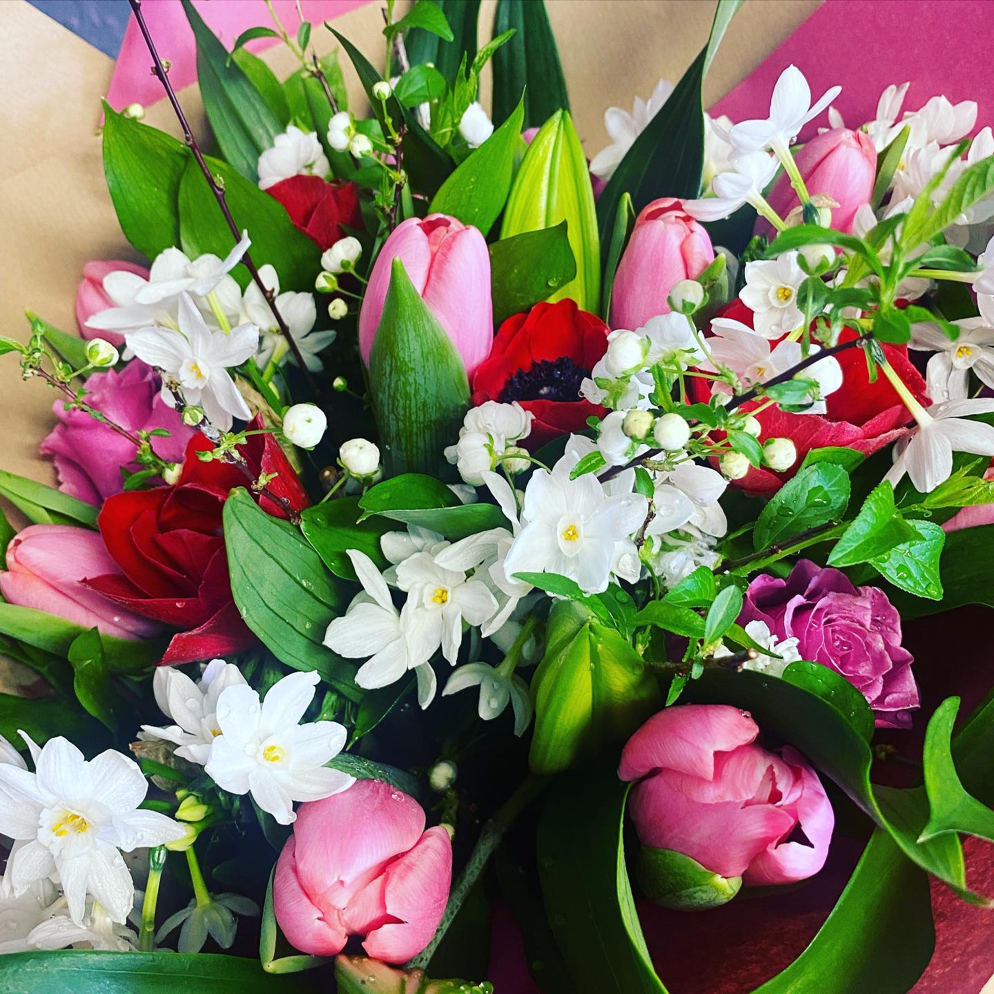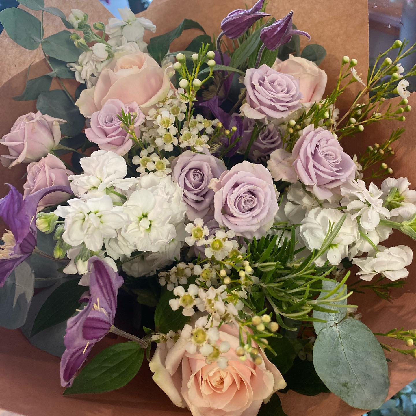 A florists choice bouquet, thoughtfully created from the freshest blooms at the market that day. Each arrangement is unique, guided by the season and the flowers at their very best, resulting in a natural, beautifully balanced bouquet full of colour, texture and scent.